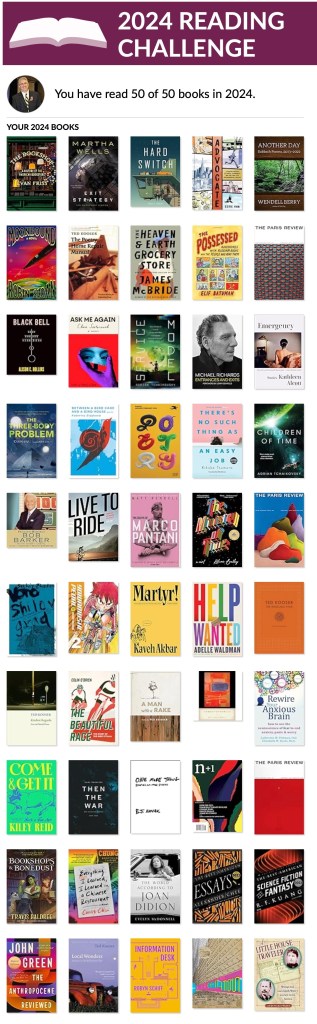 Although more than three months remain in the year, I’ve read 50 books (of 50 planned) so far in 2024. Here’s the list:
