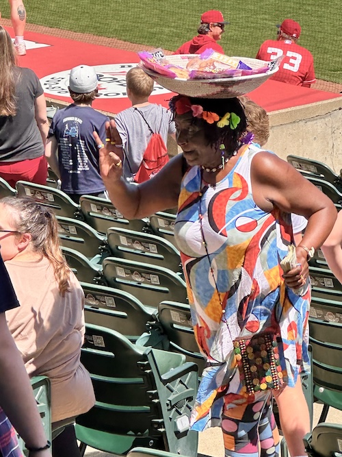 We caught a half-dozen games together that summer. At each Hannah’s attention often turned to riding the carousel behind right field, talking me into another Pepsi or box of candy or securing another chocolate chip treat from the Kizito Cooky Lady—a creative and entrepreneurial Ugandan immigrant—who walks the Slugger Field stands balancing an oversize basket packed with large cookies atop her head.