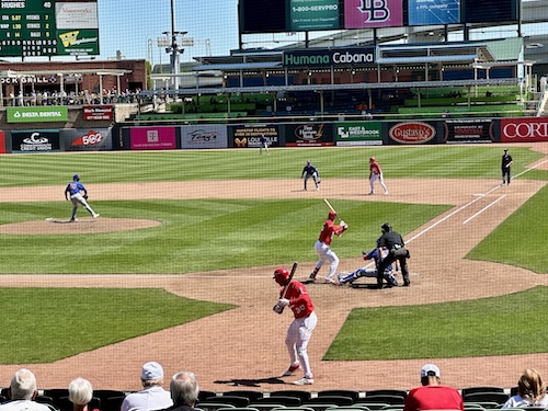 Optimism is prevalent on opening day, though. We found a parking spot just near the stadium. Back then I used to just turn left out of our subdivision and take Louisville’s scenic River Road, which provided a stress-free journey downtown, all the way to the ballpark. Before the city began insisting you queue in traffic to enter a $20 surface lot, I could just park free right on the street.