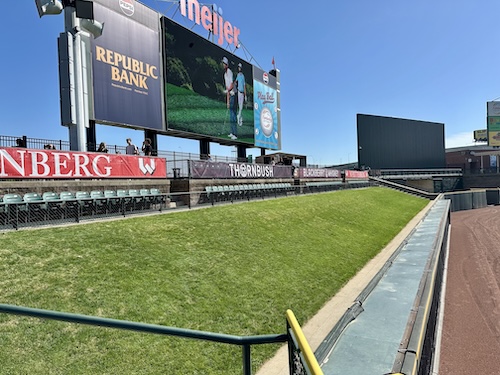After pausing briefly to absorb the scene, we grabbed a seat behind the left field wall. The stadium’s architects—HNTB and Mo and K. Norman Berry Associates—purposefully placed a gently sloping grass embankment within the $40-million facility that opened in 2000 and accommodates 13,000 fans. Families are encouraged to picnic there while enjoying the game. We would stroll to the berm from our box seat and it would become our favorite location that season. That first trip, Hannah spread her blanket, taking care to ensure she’d be leaning against me when she sat down.